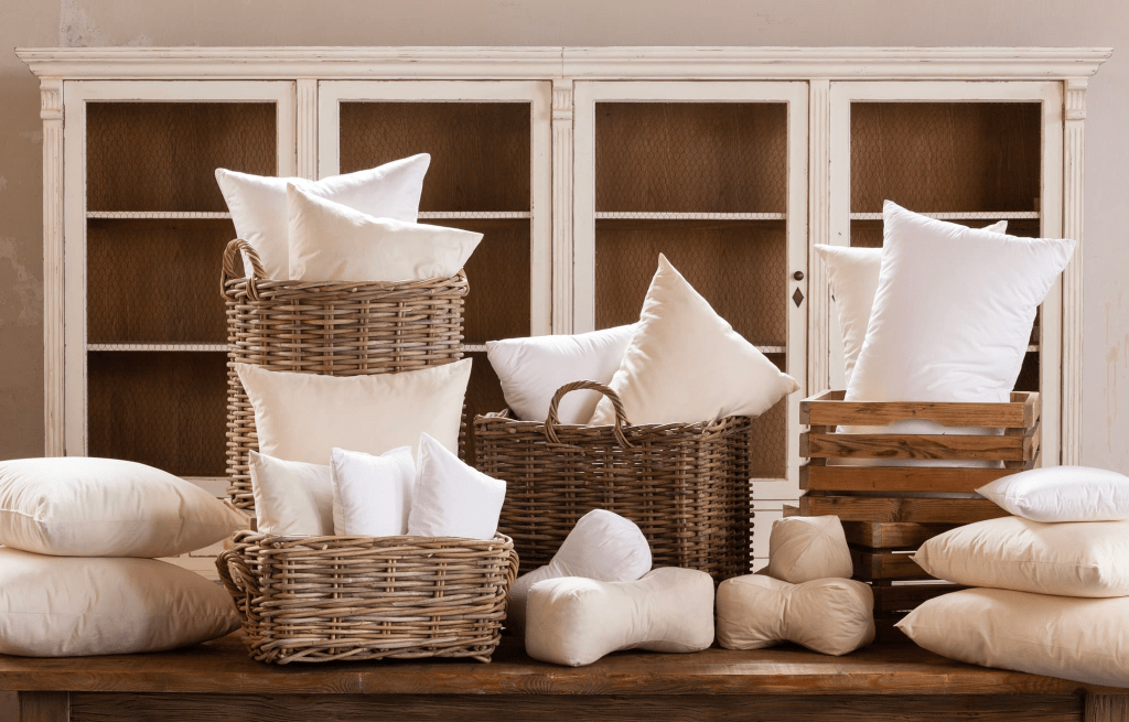 Generalmente el relleno suele ser de plumas de oca o de pato. Son ligeras y aportan firmeza a la almohada.